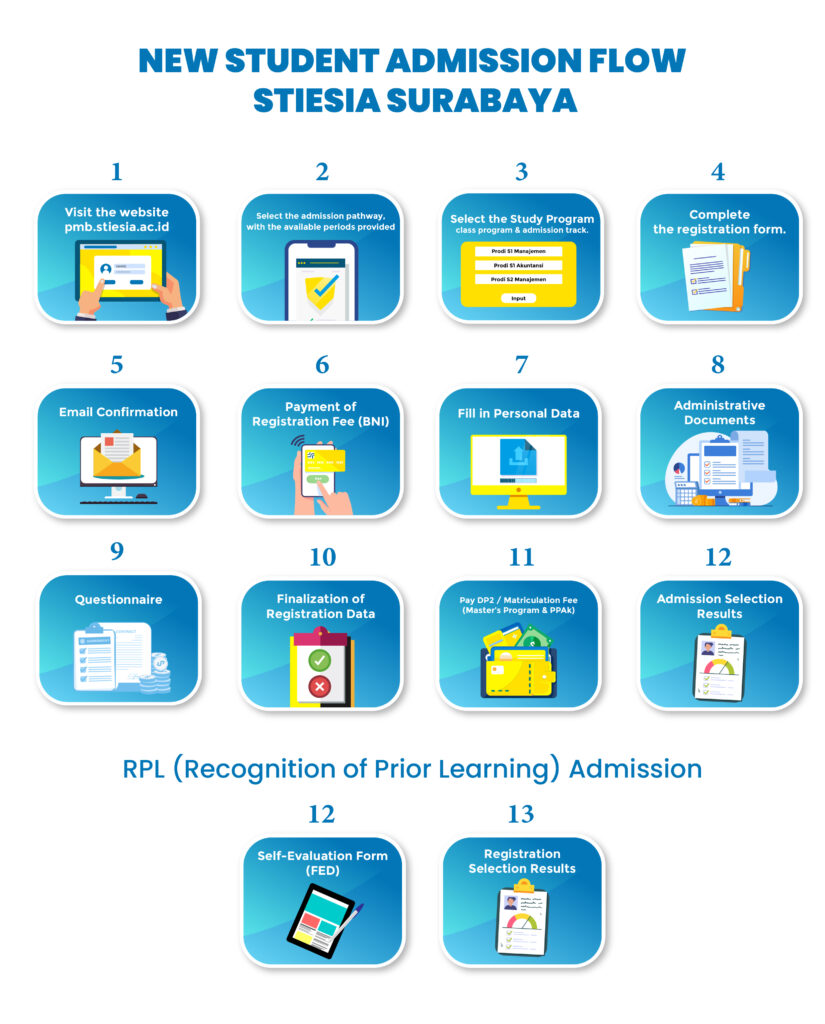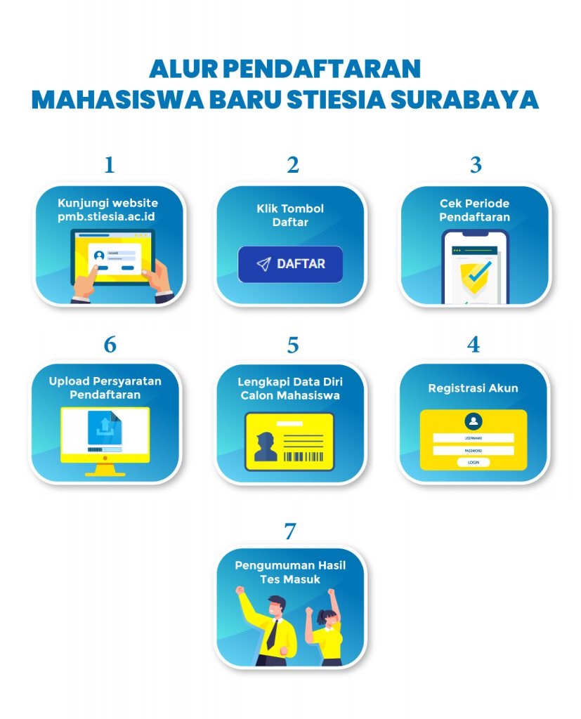 PETUNJUK PENDAFTARAN Mulai langkah besarmu disini! pmb Jadilah bagian dari Sekolah Tinggi Ilmu Ekonomi Indonesia Surabaya! Form Pendaftaran WhatsApp pMB STIESIA