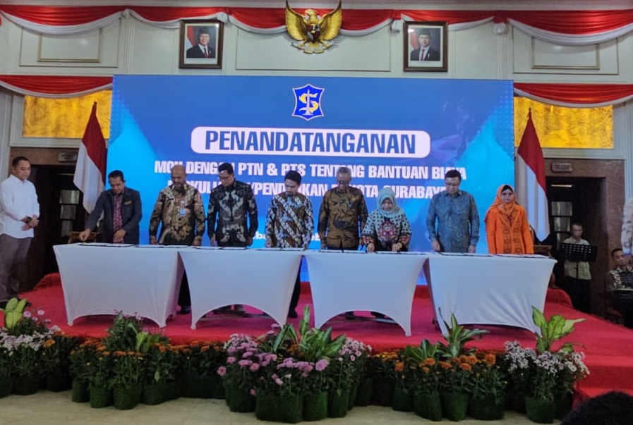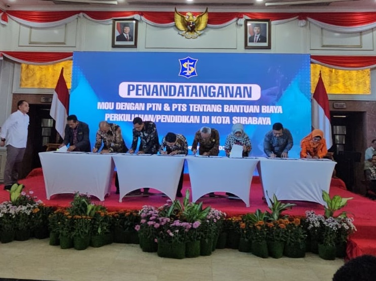 Walikota Surabaya Dr. Ir. Eri Cahyadi, S.T., M.T. menyaksikan sendiri penandatangan MoU bersama 32 pimpinan perguruan tinggi di Surabaya. Dikatakan Walikota Eri Cahyadi, bantuan pendidikan bagi mahasiswa keluarga prasejahtera tahun ini, meningkat dari 3.000 mahasiswa menjadi 24.000 mahasiswa.